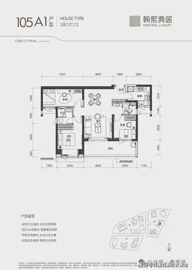 建面约105㎡的3房2厅2卫