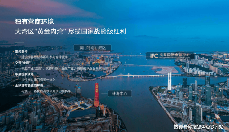 横琴金融岛首排位,纵览澳门塔和十字门繁华盛景,一眼万亿 !