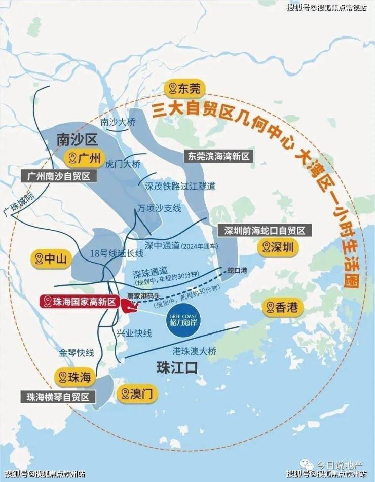 ,所在的唐家湾,地理位置得天独厚,占定三大自贸区几何中心(深圳前海自贸区、广州南沙自贸区、珠海横琴自贸区)。且以大桥未支点效应,多维交通路网向外延展:港珠澳大桥、深中大桥(建设中,预计2024年通车)、金琴快线、兴业快线(建设中)、唐家港码头(计划开通到蛇口新航线)、广州地铁18号线延长线(规划中)...,未来将形成大湾区一小时生活圈,接轨世界前沿。