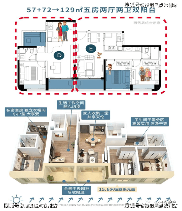 在格力海岸6期,格力地产精心打造了针对刚需,改善等不同置业需求的21种户型。业主可根据实际需求优化调整,自由组合不同户型,54-114㎡的户型面积经过组合可提升至约130-180㎡,从而实现双客厅设计与双功能分区。与此同时,“两代居”产品让年轻人和老年人的生活空间既相对独立又能紧密相连。