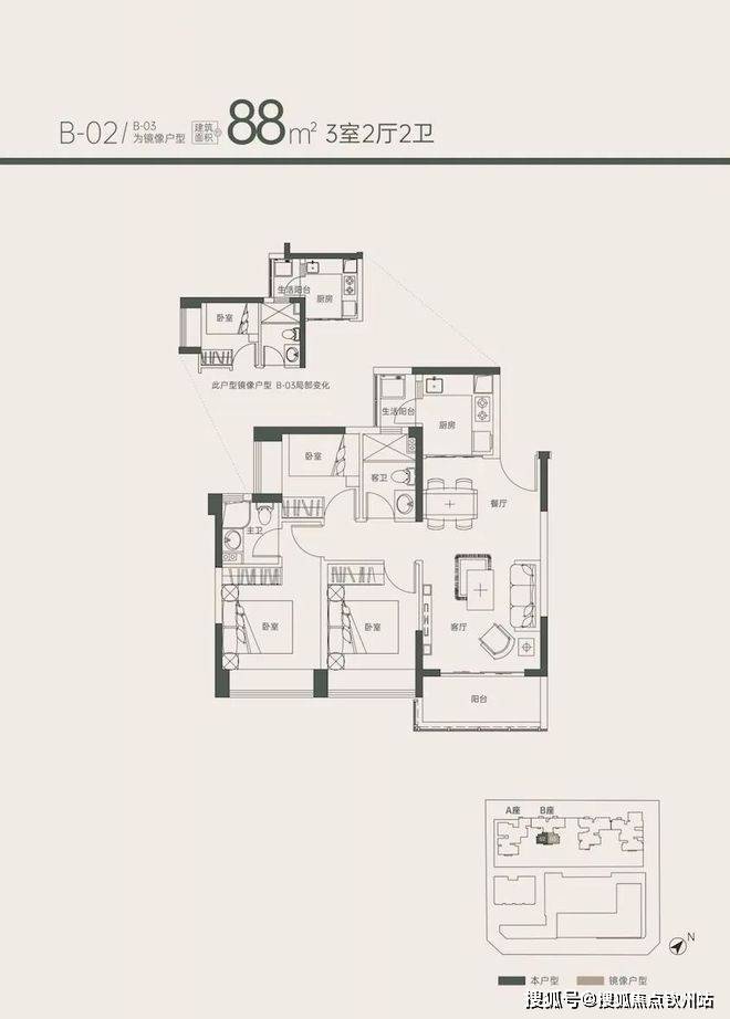 88㎡ 3房 单价7.48万/㎡起 总价659万起