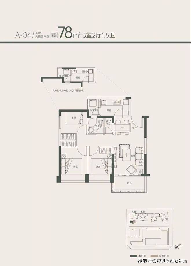 ◇ 户梯比:1栋A座3梯8户;1栋B座2梯4户