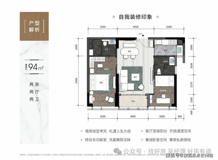 · 94㎡两房:精巧布局两房两卫并通燃气,厅出阳台,3.15米层高,舒适宜居。