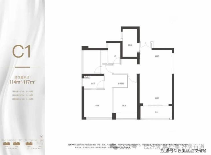 · 114-119㎡三房:该户型设计为3房2厅2卫,有南向海景和南北通透两种选择。其中114-117㎡户型客厅及双卧室全南向,高层可观海景,低层可赏园林。