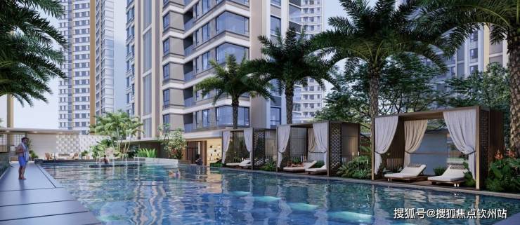 园林规划极具巧思,打造“两轴三园”景观体系:108米酒店式入口堪称珠海罕见,两侧种植罗汉松寓意招财守宅,夜晚“兴”字星形灯光亮起,归家仪式感拉满;泗水归堂下沉水景灵动雅致,宝格丽度假双泳池分成人池(30×10m)与儿童池(9.3×9.3m),夏天带娃游泳不用跑外面;鹤舞主题儿童区融入珠海非遗文化,滑梯、攀爬区等设施让孩子尽情撒欢。