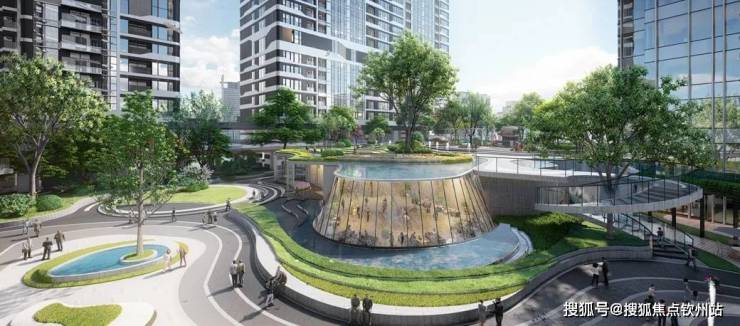 天工园林——约36000㎡五重立体园林设计,园林设计由全球最大的景观与规划设计公司AECOM设计,创新的引入了新加坡森林城市立体园林的概念,由下而上通过曲线的绿化、铺地、浅水等表达“山之叠嶂、绿之叠翠、水之叠灵、云之叠景”的意境。