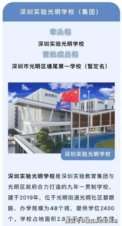 去年官宣:据光明教育局官方公众号发文:新集团+新模式,光明区再添两个基础教育集团,深圳实验学校正式落地在光明凤凰街道塘尾社区,月亮路与碧塘路交会处西南角,办学规模为54班九年一贯制,将大大提升及带动光明的教育质量及水平,同时还在深中学区范围,即双名校加持(最终学区划分以当年教育局政策为准)