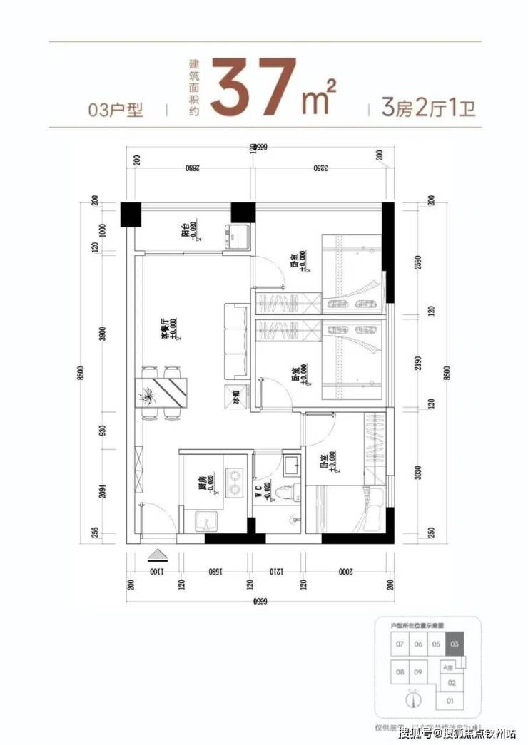 【产品面积】约37㎡小两房或者小三房(实际套内使用面积接近54㎡)