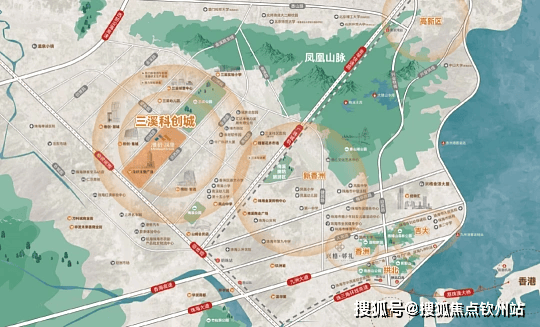 通过 西部沿海高速、珠峰大道、黄杨大道 等连接珠海主城区(香洲、吉大)及金湾区。至香洲主城区车程约50-70分钟,至金湾航空新城车程约30-40分钟。
