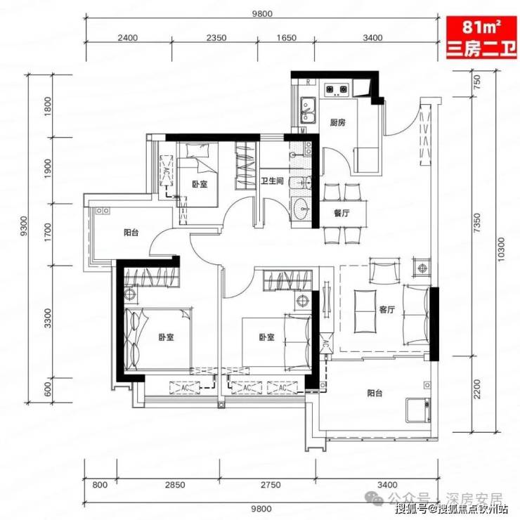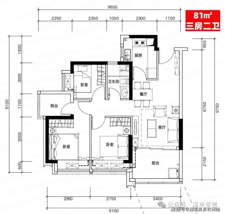 81平做三房已经很牛了,没想到还有更厉害的,松茂御城81平居然做四房!