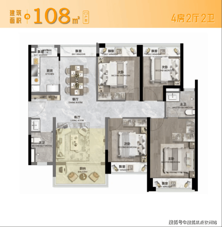还有建面约108㎡的大四房户型,足以实现三代+二孩家庭欢聚一堂的舒适生活。
