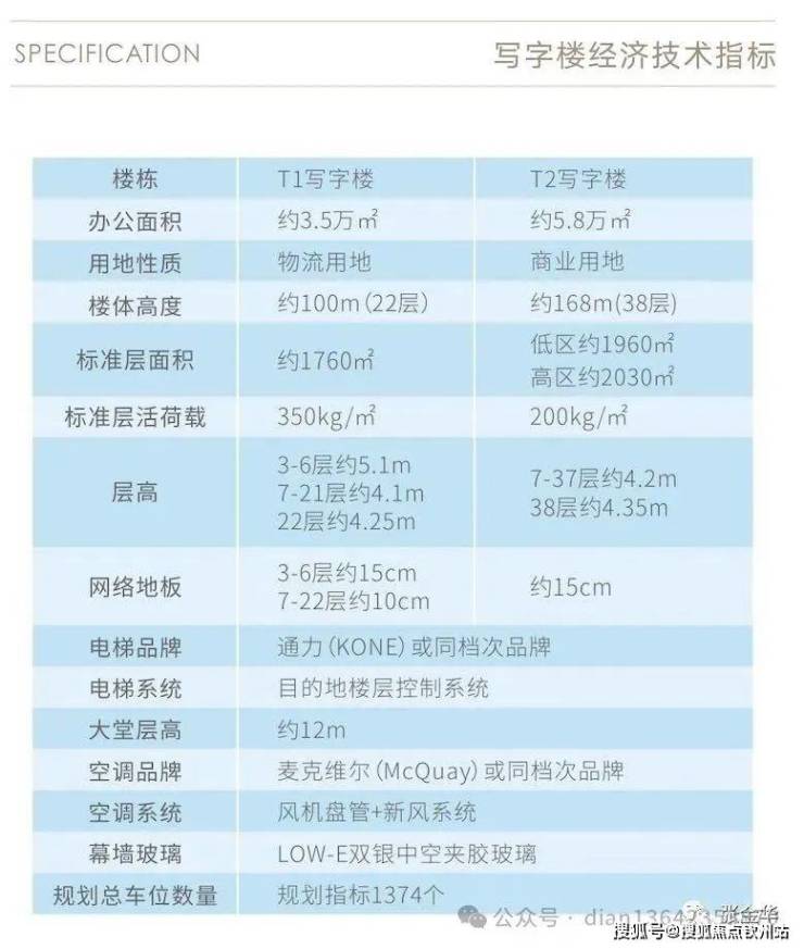 标准层面积:T1栋约1760㎡/T2栋低区约1960㎡,高区约2030㎡