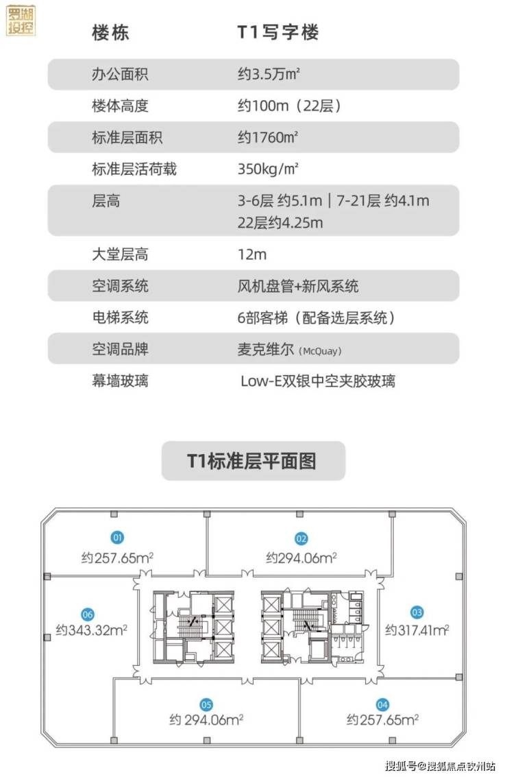 办公面积:T1约3.5万㎡、T2约5.8万㎡、共约9.3万㎡