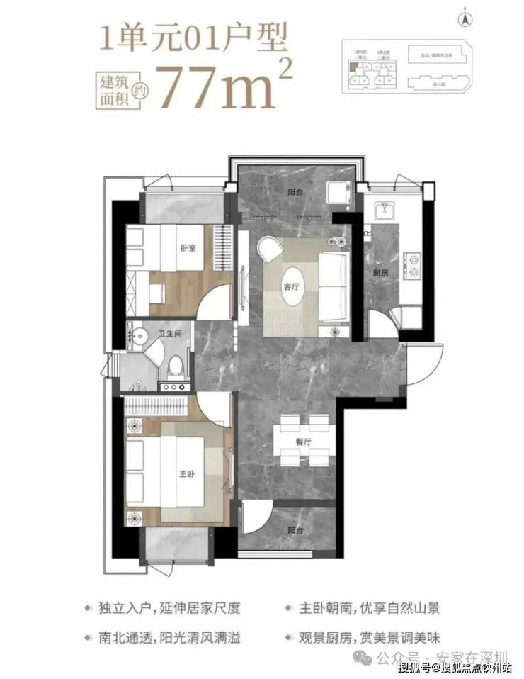 其首推1栋A座的1/2单元51层住宅,户型图还没出来。但其面积涵盖77-8x-9x-114㎡2-4房,其中9x平有两种户型设计,纯刚需设计,整个项目主打“地铁口+大学区+梧桐山景观”。