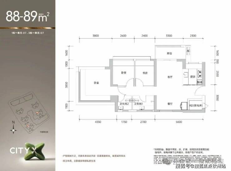 88㎡的3房2卫,折后总价315-323万/套,折后单价3.57-3.66万/㎡。