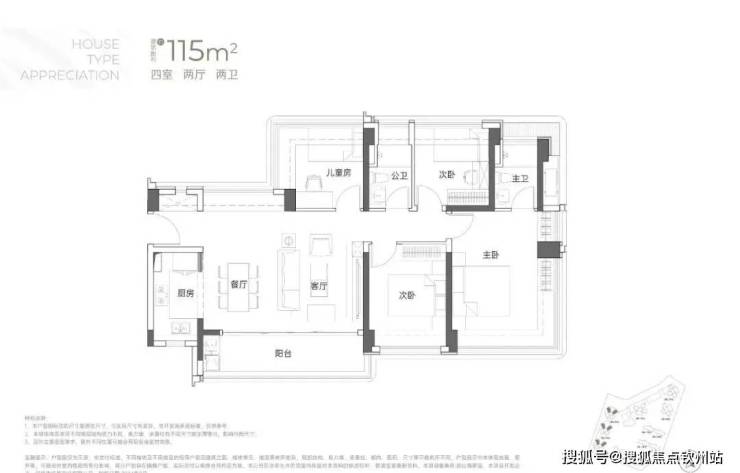 建面约115㎡4房2厅2卫