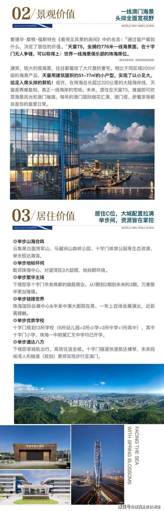 华发琴澳新城·悦玺位于十字门中央商务区核心C位,融“山、海、城”臻稀资源于一体,脚下就是鎏金之地,奢享国际会展集群、星级酒店集群、总部办公集群、旗舰商业集群、人文艺术集群、全龄教育集群六大配套集群,重新定义何为湾区理想人居。