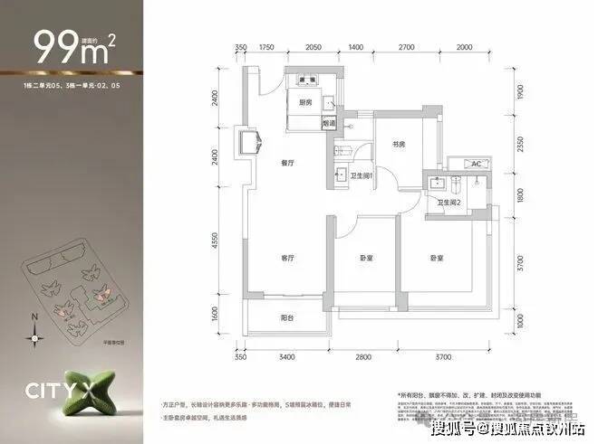 王炸户型 约89㎡3+1房两厅两卫(双娃家庭置业首选)