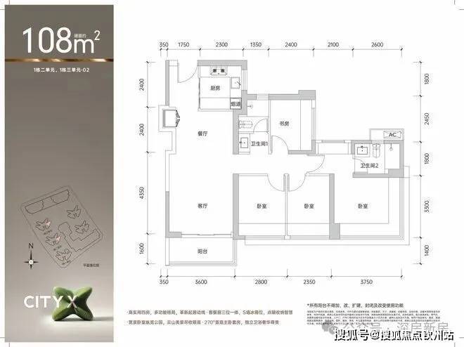 南北通透双厅设计,户型方正百变空间;双卫设计宜居便利,主卧270°宽景采光