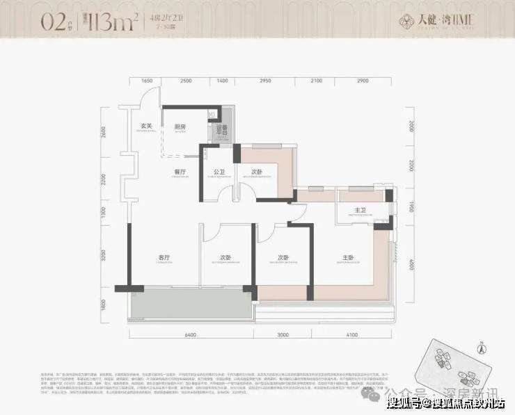 - 113㎡四房:南北通透设计,动静分区明确;主卧带独立卫浴+飘窗,次卧与公卫采用“类套房”布局(次卧可独立使用公卫),空间实用性强。