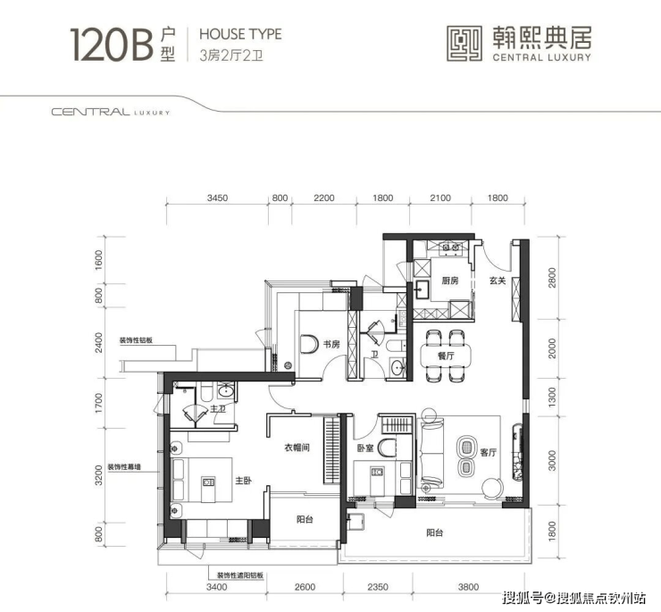 2、建面约120平B的户型: