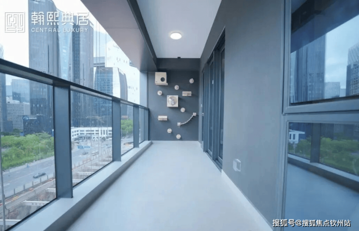 这个值得称赞的还有阳台,阳台长度约6.5米,面积约10个平方,呆呆那天去看的时候,有在看房的中年女性看到阳台上还能装置猫咪空间时候,非常开心,说以后自家宠物可以在这个区域玩耍了。