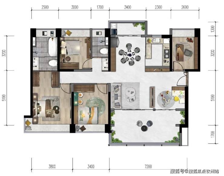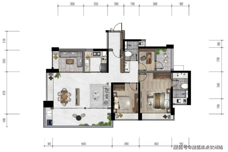 (3栋02/03户,非最终版本,各梯腿户型有所差异,以售楼部现场输出为准)