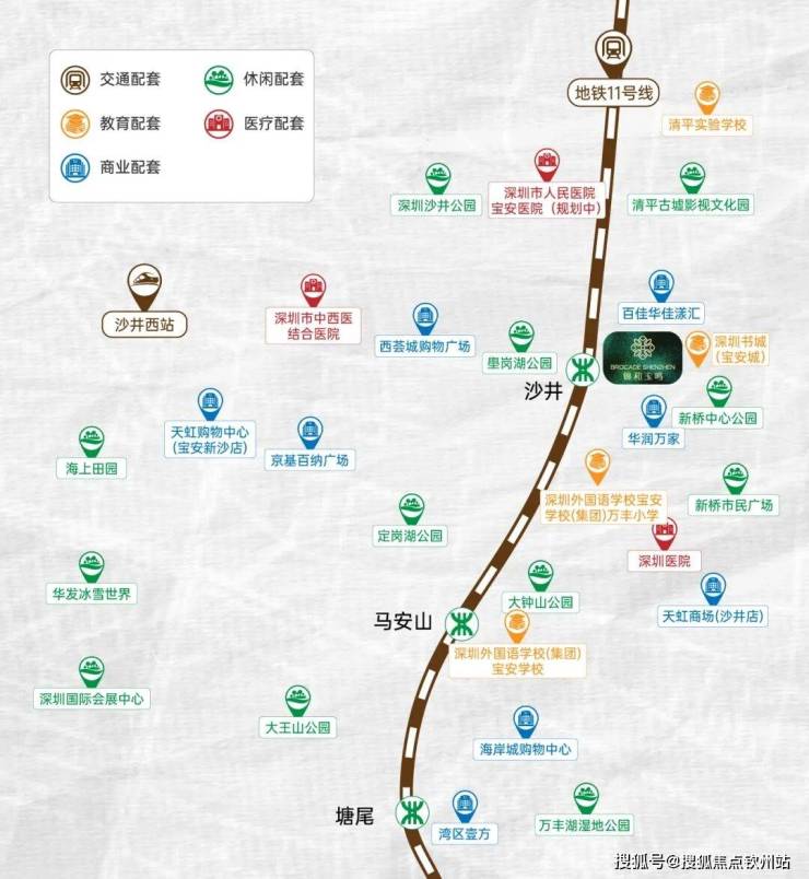 • 地铁直达:约300米(直线距离)11号线沙井站,6站直达宝安机场,8站宝中,9站前海