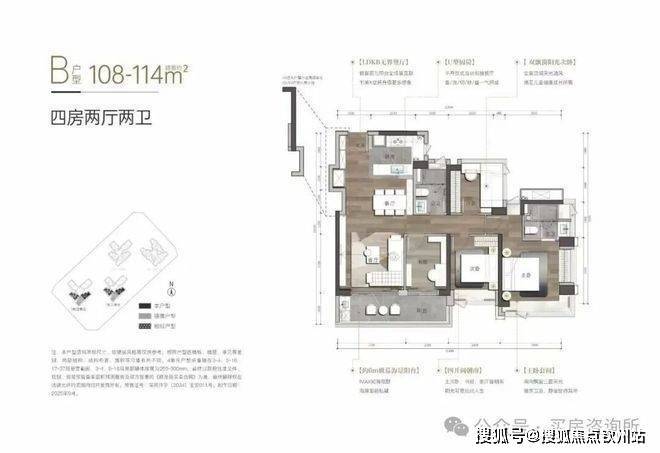 户型设计方面,梯户比为1-2,1-3单元31层高,1-4单元37层高2梯5户、1栋1单元31层高2梯6户,户型设计有95-108-109-138㎡得房率在92-98%左右
