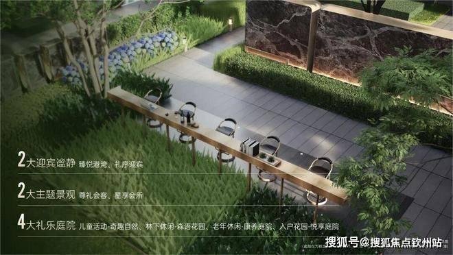 将自然之美与精致工艺融为一体,打造景观会客厅、艺术水景、户外吧台、阳光草坪等静谧空间。