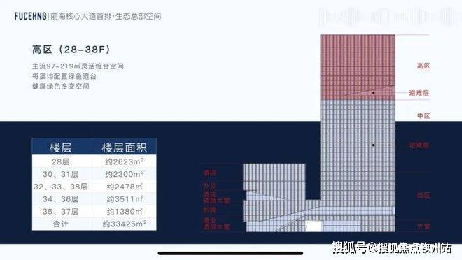 标准层高:2-7层4.5米,8-38层4.2米(净高3米)