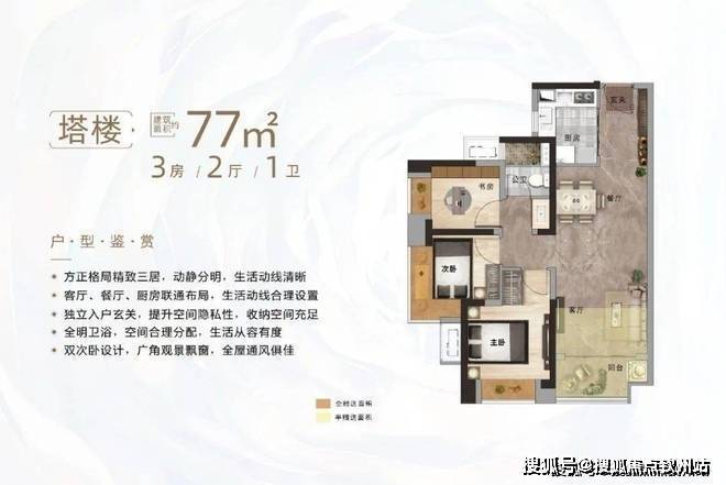 | 塔楼 约77㎡3房2厅1卫 |