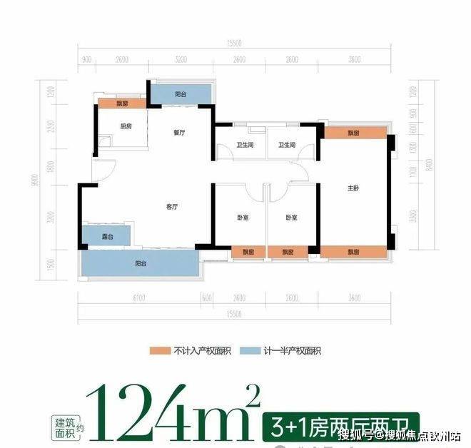 主卧双飘窗+次卧等面宽飘窗,全赠送高拓空间
