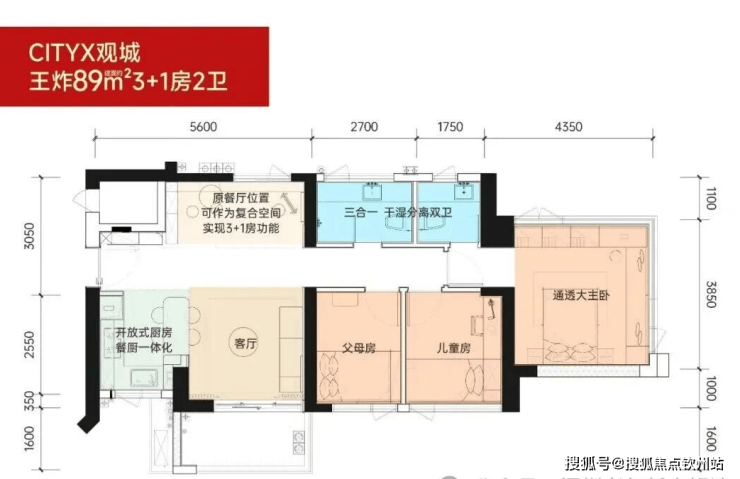 01户型:88平(南北通透)单价39900-40800,总价351-359万。