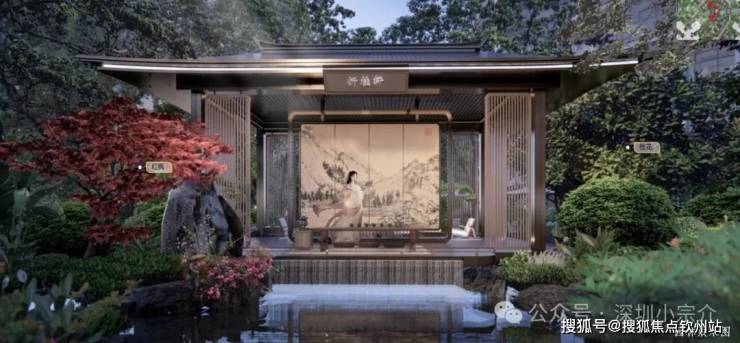 05【元素提炼】致敬经典,艺境再生撷取清晖园“水榭、拱桥、奇石、飞瀑、花窗”五大元素,以现代设计语汇重塑岭南意象。