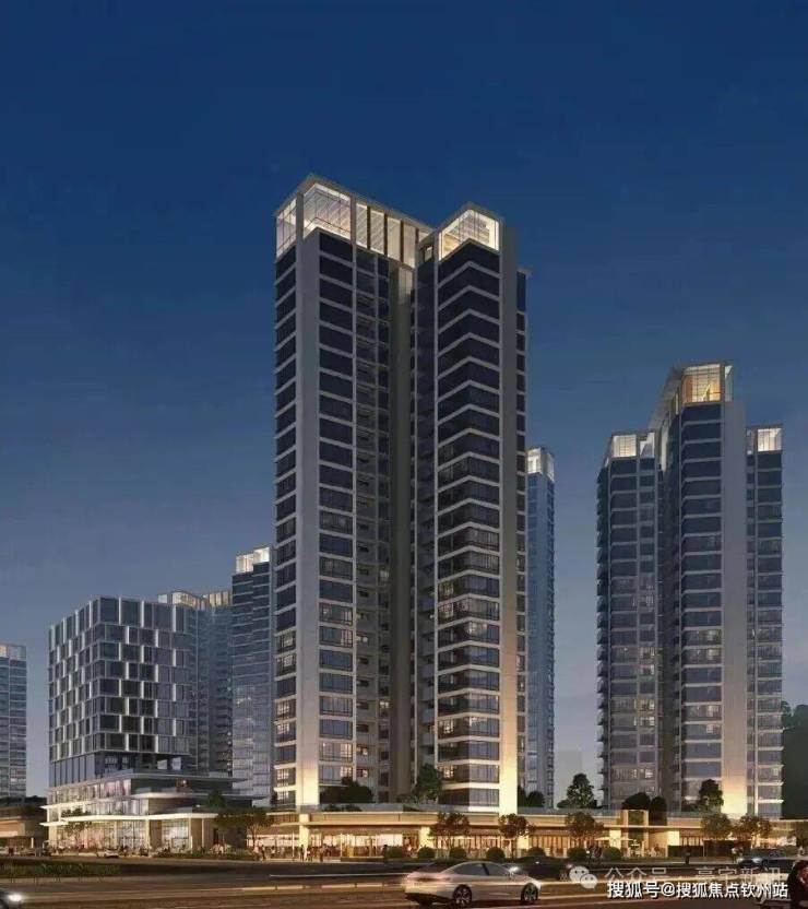 立面设计以“温暖港湾”为灵感,寓意航海远行后满载归来,让人们在城市之心就能抵达温暖港湾,尽享轻奢栖居。从广深沿江高速、深中通道的视角看,天际线呈前中后三个层次高低起伏,形成流动天际线,焕启一眼惊艳的天际风尚。