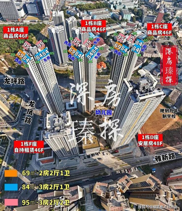 保利招商雍山郡,由保利+招商集团2大央企开发,总占地面积约2.5万㎡,总建筑面积约18.3万㎡,计容建筑面积约13.5万㎡,容积率5.4,绿化率35%,共由5栋46-48F的超高层住宅组成,其中1栋A/B/C座商品房46F,1栋D座安居房48F,1栋全年自持租赁住房46F,2栋是1所幼儿园。