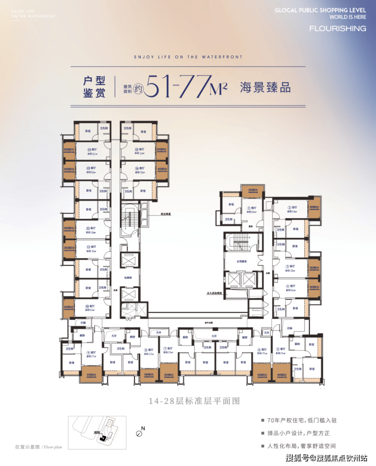 在售产品:住宅51-77㎡ 608户 精装交付