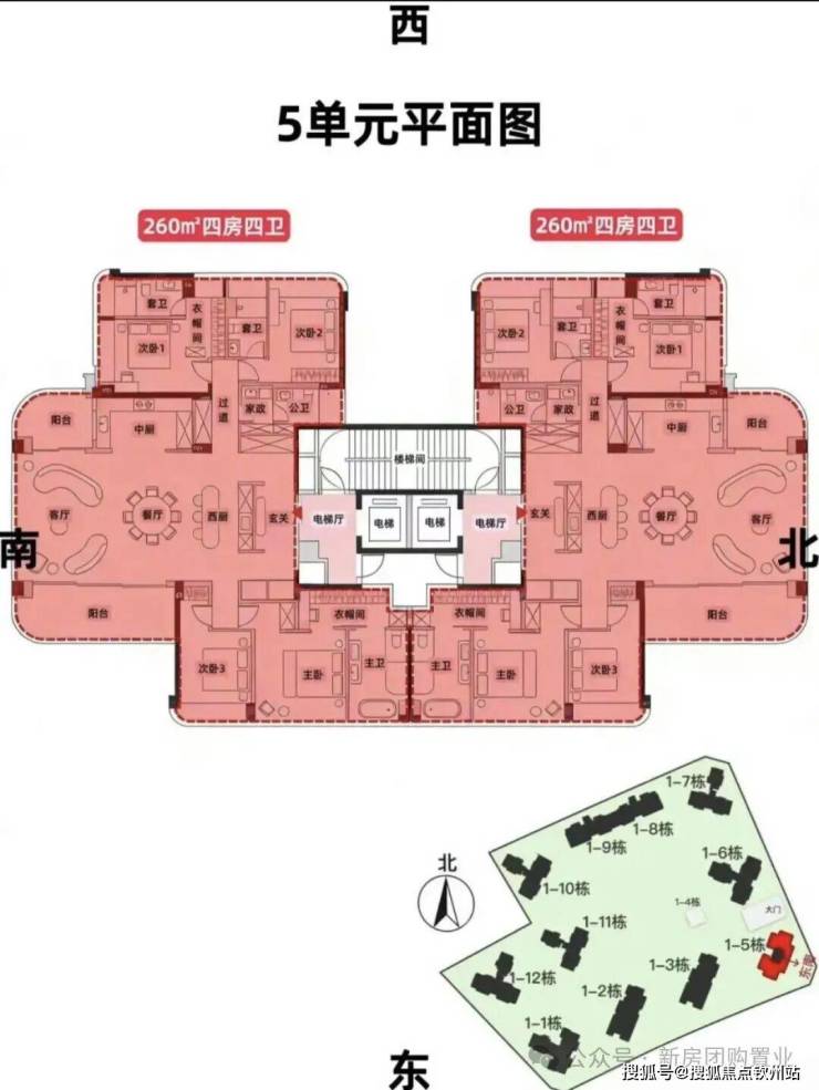 5单元:21层,2梯2户, 建面约260㎡,还有1套500㎡顶复