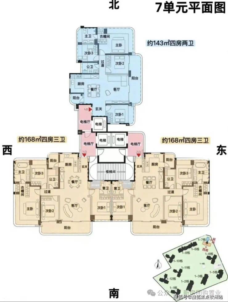 7单元:23层,3梯3户, 建面约143-168㎡
