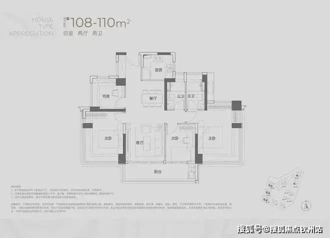 该户型为西南向或东南向,竖庭设计,南北通透,阳台也是连通到次卧对出,比较宽敞。户型动线也比较清晰,动静分区合理,特别是两个卫生间紧靠在一块。