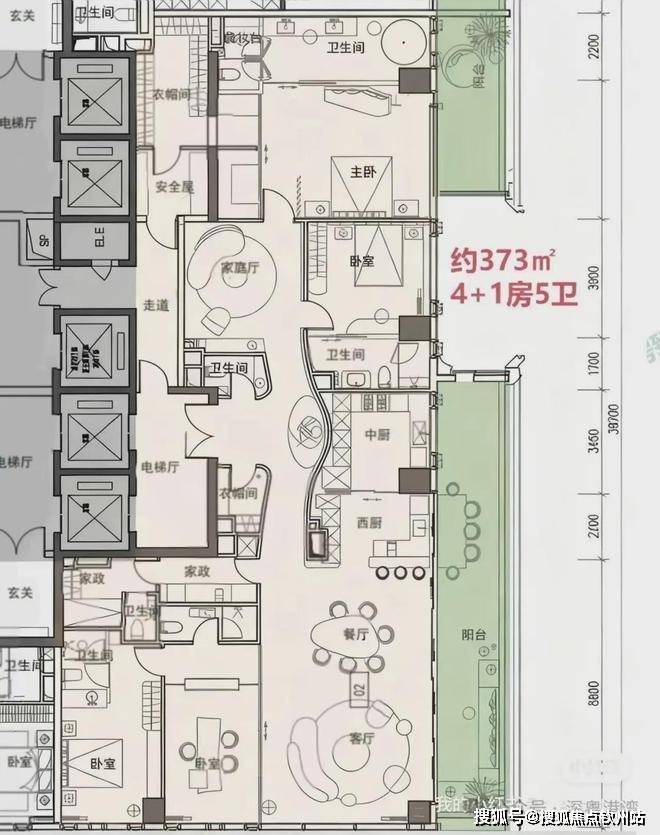 沄玺花园景观聚焦东侧,面向深圳湾人才公园,采用“全向东”布局策略。