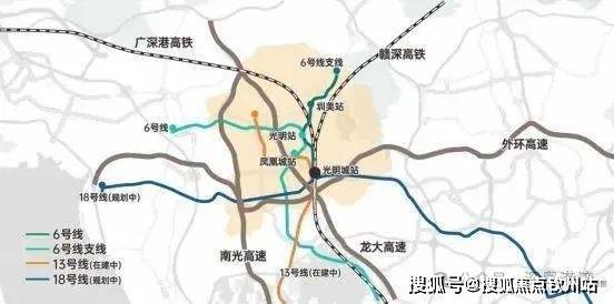 直线距离约1km内汇聚6号线支线圳美站、光明站双地铁站点,可换乘地铁13号线(在建中),约5km直达高铁光明城站,近享龙大高速、南光高速双交通动脉,畅享大湾区1小时生活圈