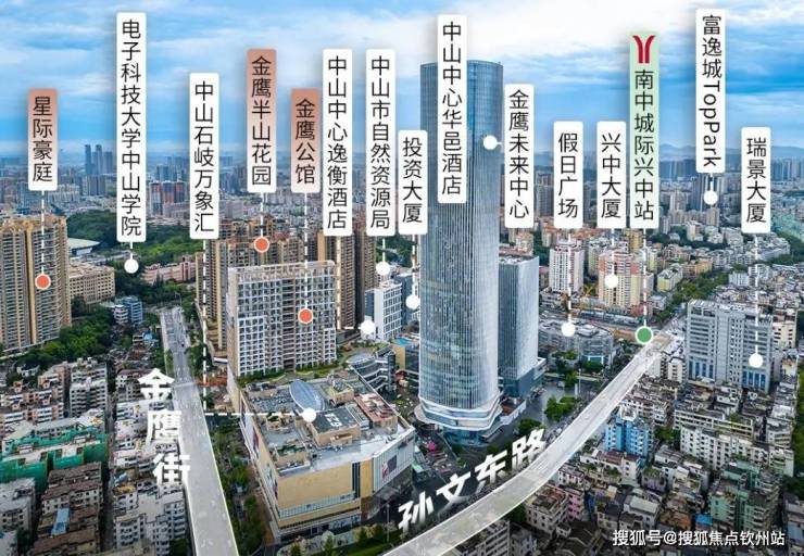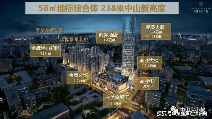 项目本身是一个约58万㎡的“城上之城”综合体:238米的金鹰未来中心是中山主城区第一高楼,也是中山唯一LEED金级认证商务建筑;中山石岐万象汇商场引入盒马等数百家中山首店品牌;洲际集团旗下中山中心华邑酒店、中山中心逸衡酒店双双落位,形成中山首家双品牌复合体酒店。