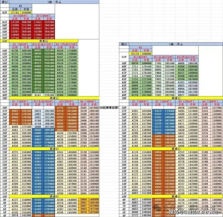 · 超高区58F起(200米以上)是约500-700㎡顶级大平层;