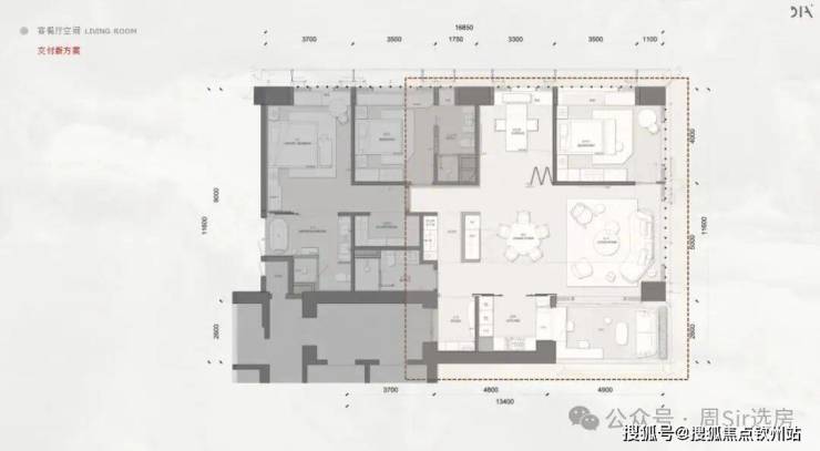 · 高区42F起(150-200米)是约370-375-403㎡4+1房五卫+家庭厅+家政套间;