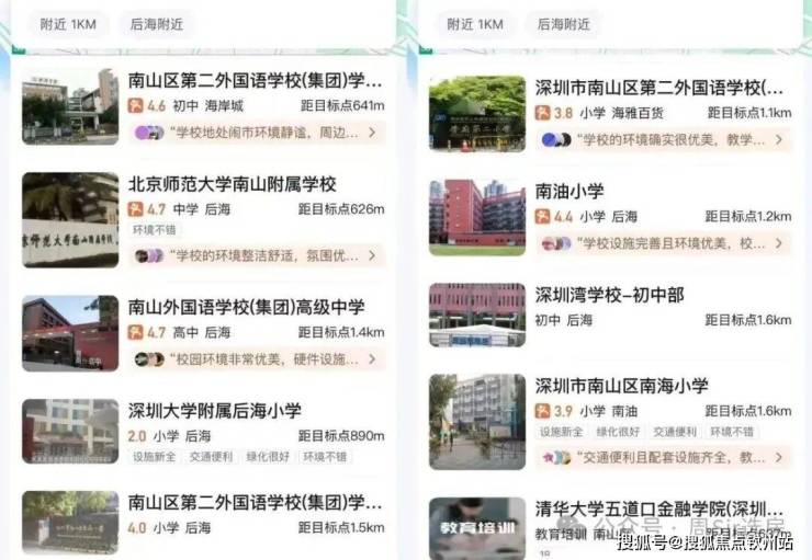 周边有北师大附小,南山外国语学府学校,南二外学府中心南油小学,深圳大学附属后海学校,北师范大学附中,深圳湾学校等。