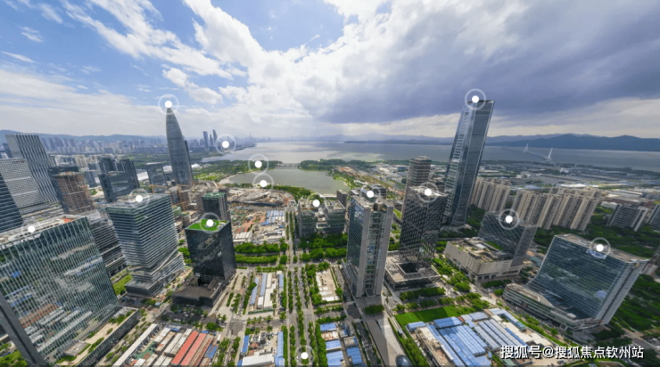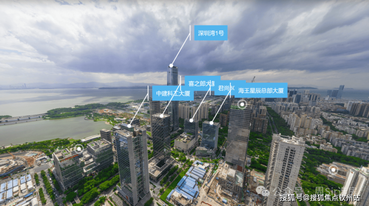 通过航拍图可看到,东侧的阿里巴巴大厦(78.4米)、中科建工(162米)。如果层高和深湾玖序一样(3.3米),算上底商和会所的高度,大概24层以上就有不错景观。
