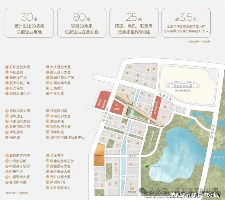 后海总部基地,地处粤港澳大湾区几何中心,是链接深圳各核心功能区的关键节点,是大湾区资源密度最高、制度最开放的总部经济聚集地,创富密度全国榜首,世界500强领袖级总部集群。深圳湾澐玺,全球核心城市的臻稀资产。(数据来源:深政观察)