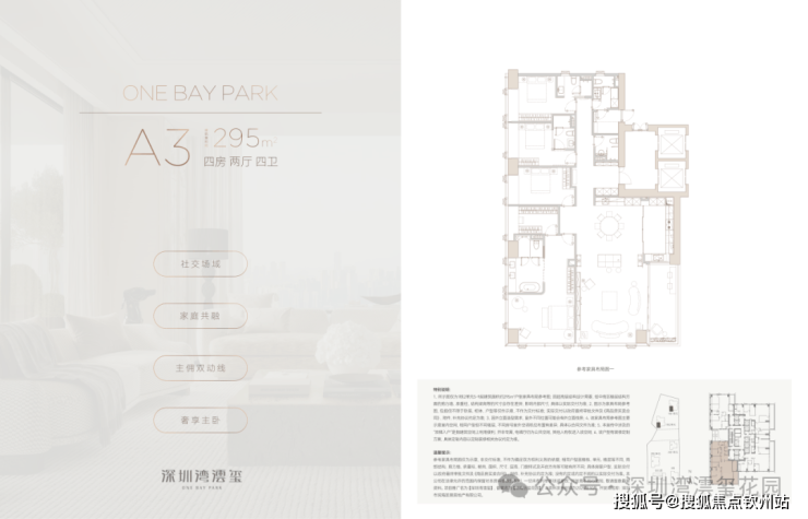 一席藏尽海/湖/园/城,四重盛景,踞守深圳湾畔约270°环瞰海景壮阔、湖境悠然、园景森氧、城脉璀璨的封面地脉。近享深圳人才公园,占地77万平方米,内湖面积约32万平方米,"公园生活圈"步行可达。(信息来源:深圳人才公园公众号)